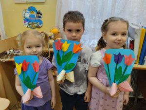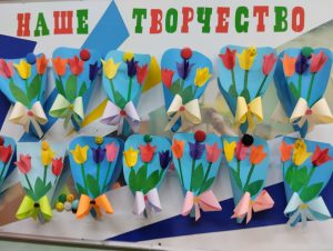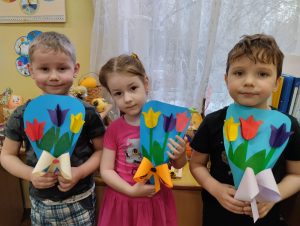 Вот и ребята средней группы 4 ” Зайка” для своих любимых мам и бабушек приготовили красивые букеты, ведь все женщины очень любят цветы.