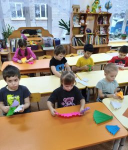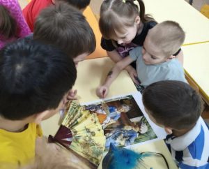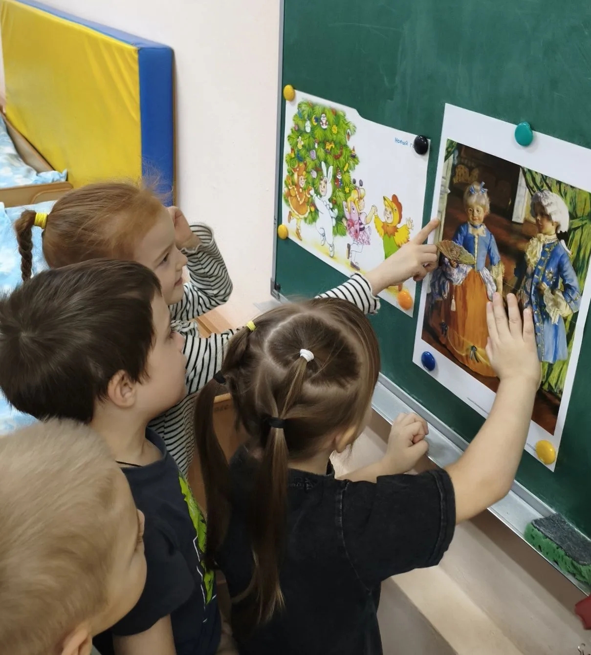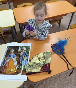 В рамках проекта “Картинная галерея”дети логопедической группы номер 3 познакомились с полотном Б.М. Кустодиева “Дети в маскарадных костюмах”. Наши ребята узнали,что такое двойной портрет,что одевали на маскарад и кого же изобразил художник на картине. Занятие прошло динамично и весело, с помощью масок и вееров дети почувствовать себя на маскараде. Оказывается знакомство с художественными произведениями не такое уж и скучное занятие. Воспитатель Ткаченко Л.С.
