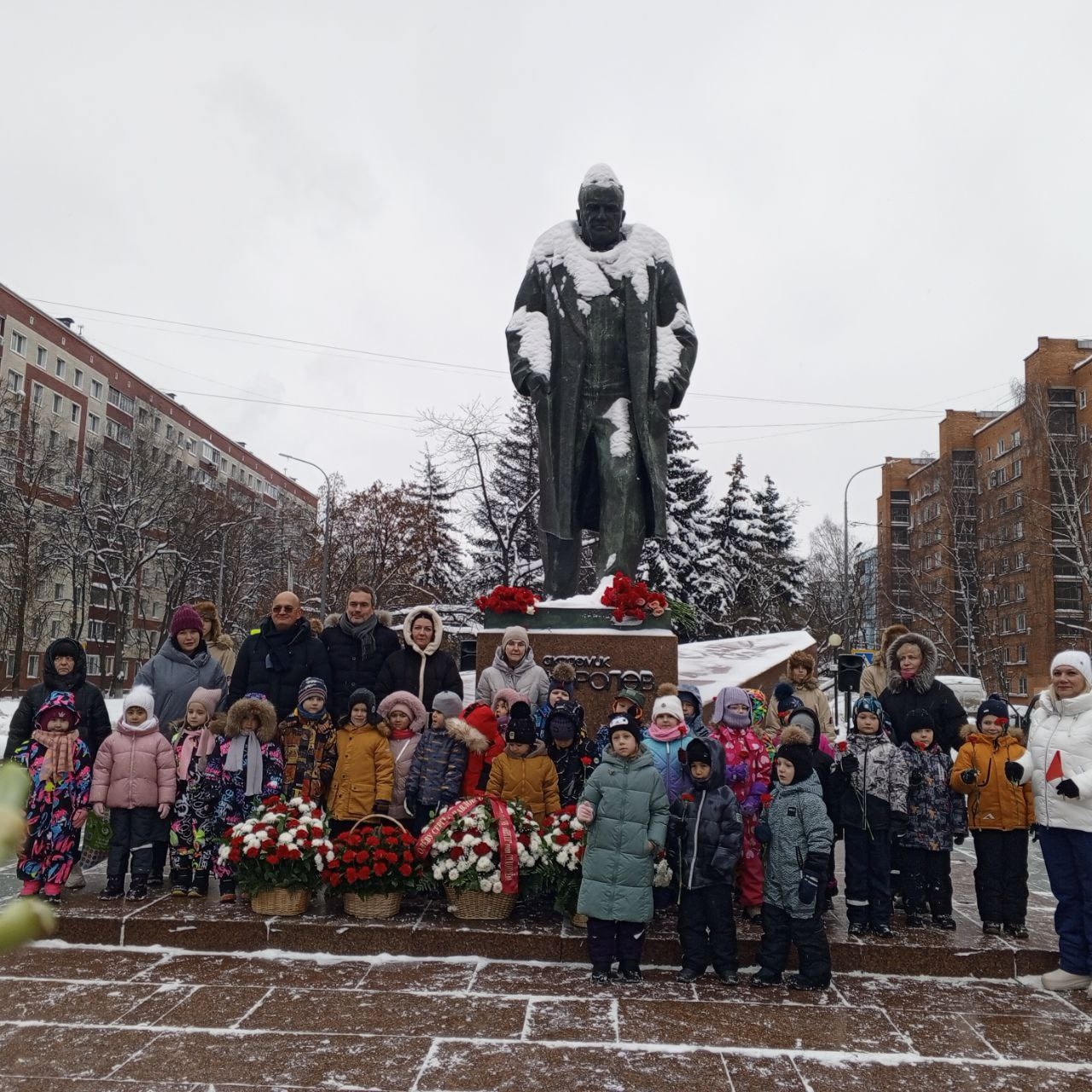 Вместе с внуками Сергея Павловича – Андреем Королёвым и Сергеем Королёвым, депутатами городского Совета, сотрудниками градообразующих предприятий, общественными деятелями, юнармейцами, школьниками и жителями возложили цветы к памятнику конструктора. Среди собравшихся учащиеся 10 классов и дошкольных отделений Гимназии N17.