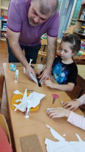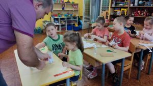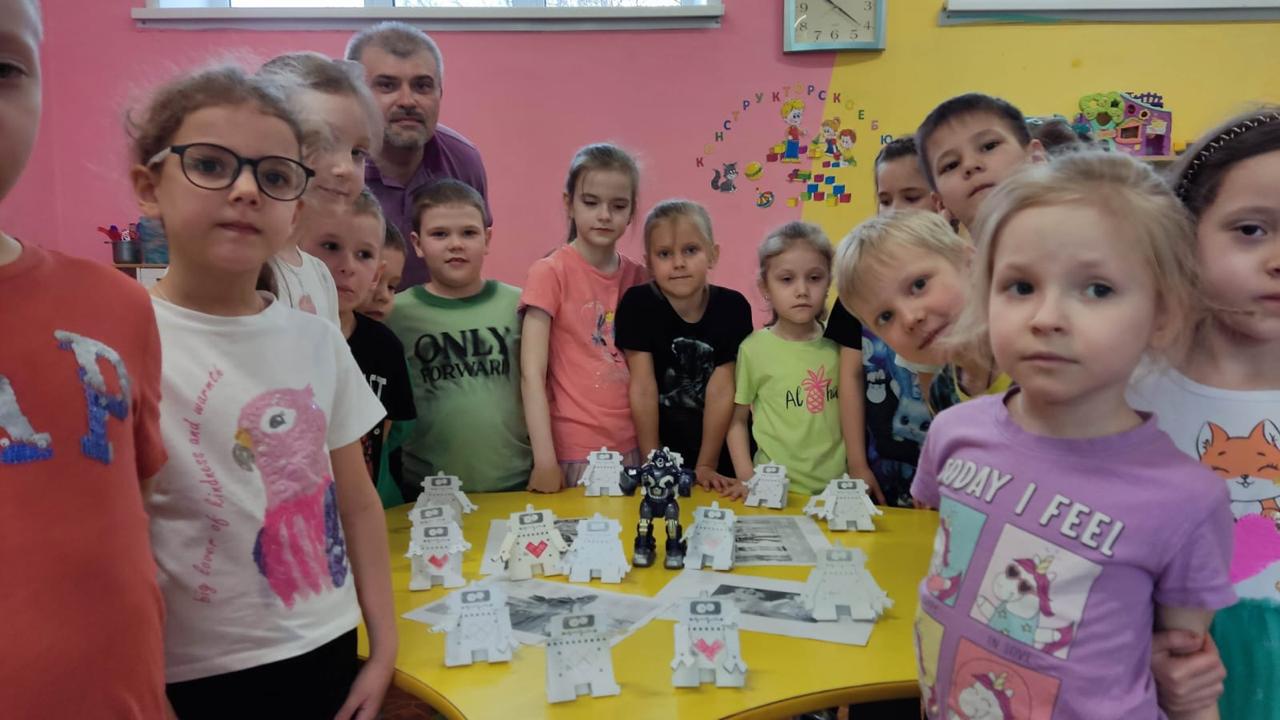 нужно знать историю создания роботов, знать, как в нашей стране развивалась робототехника во время Великой Отечественной войне и в наше время, где она применяется. В нашей группе – подготовительной “Колокольчик” Зелинка Сергей Степанович, папа воспитанника нашей группы, провел мастер класс “Роботы на страже Родины”, он рассказал, что такое (военный робот) — устройства автоматики, заменяющие человека в боевых ситуациях для сохранения человеческой жизни или для работы в условиях, несовместимых с возможностями человека, в военных целях: разведка, боевые действия, разминирование и тому подобное. Дети с интересом применяя свои знания и умения по изготовлению поделок из бумаги, сделали замечательных роботов и использовали их в играх.